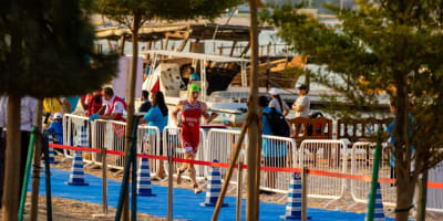 This World Beach Games is also a first. It is an initiative by the Association of National Olympic Committees to bring a new generation of athletes and fans together. Climbing and skateboarding are two of the sports yet to feature in an Olympics and they take place alongside ‘beach’ versions of more familiar Olympic disciplines such as wrestling, football, handball and basketball. Our sport was represented by aquathlon (run 2.5km, swim 750m, run 2.5km) and 2×2 team relay aquathlon (run 1.25km, swim 500m, run 1.25km repeated twice by each athlete).